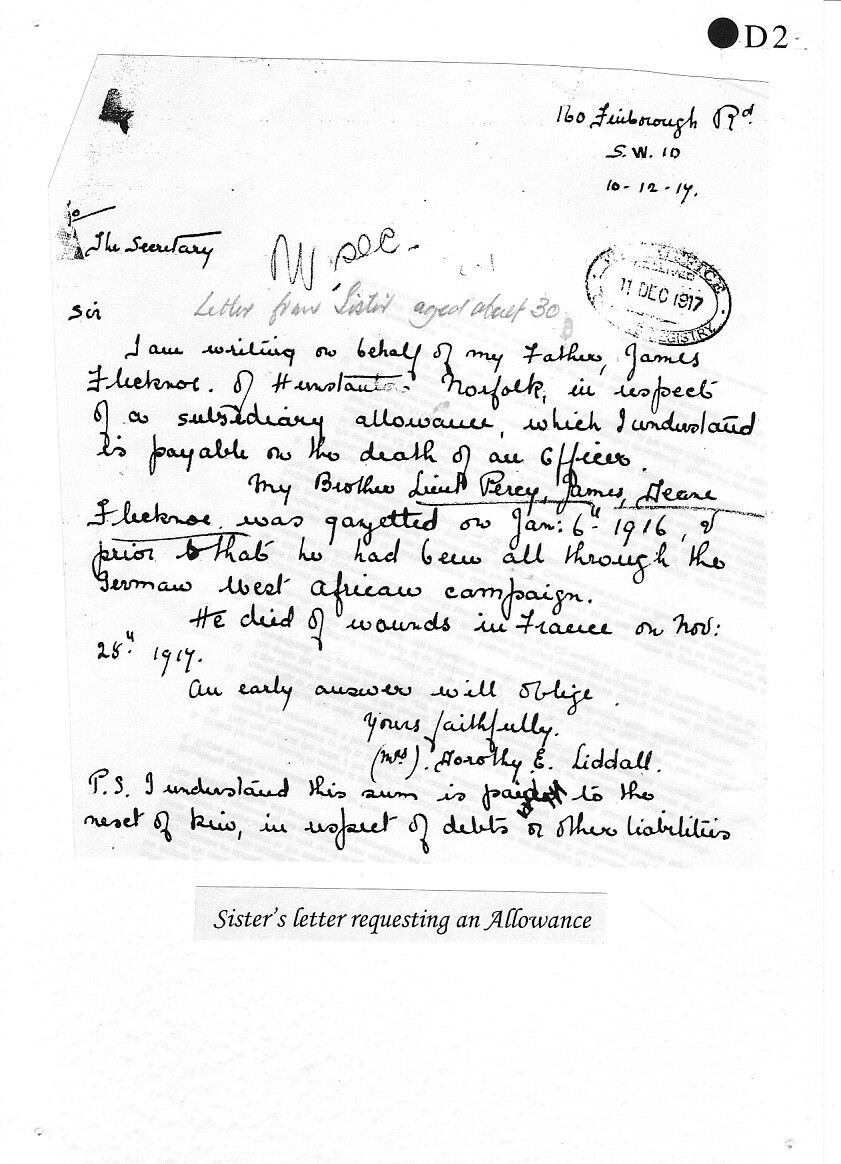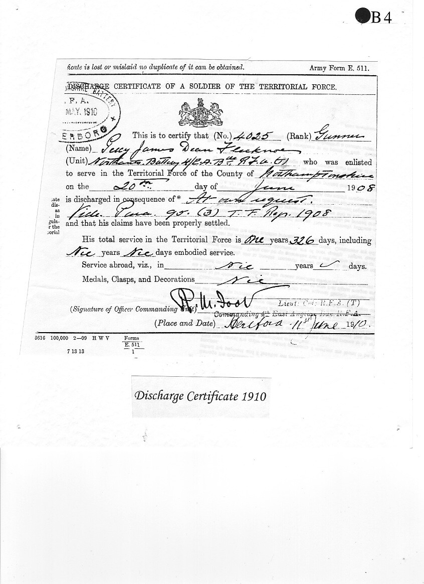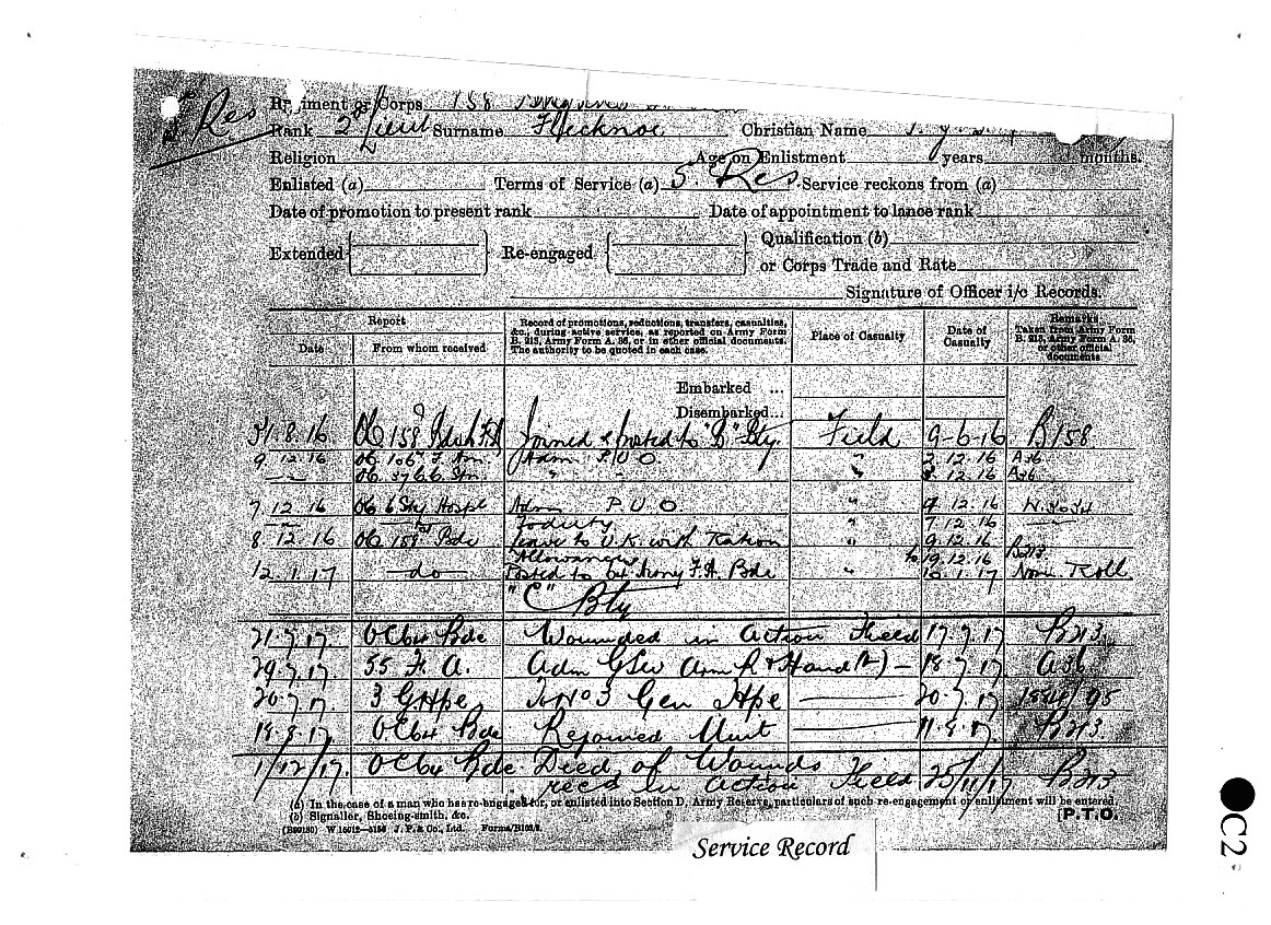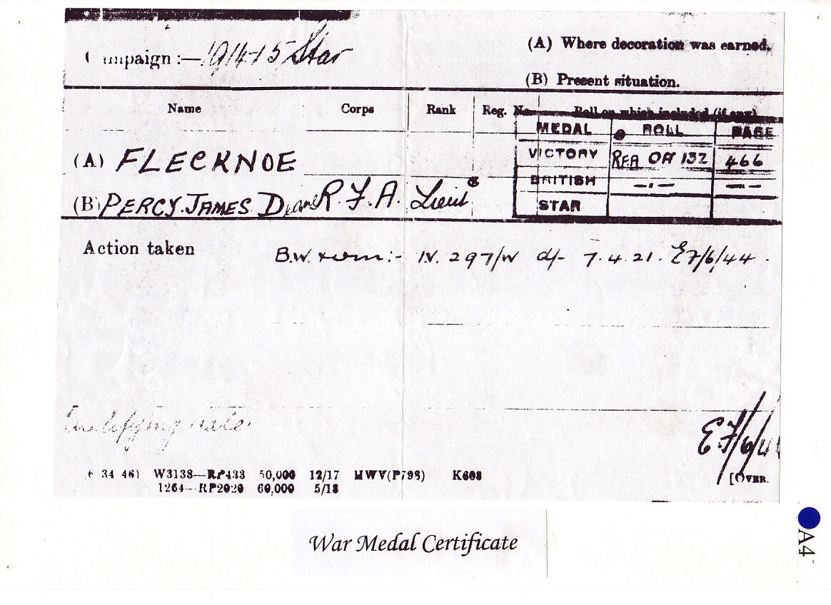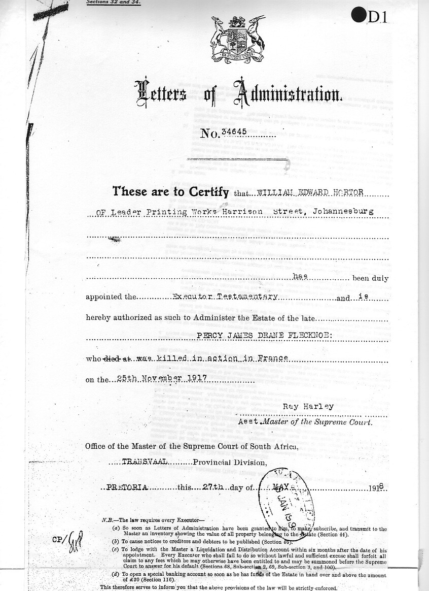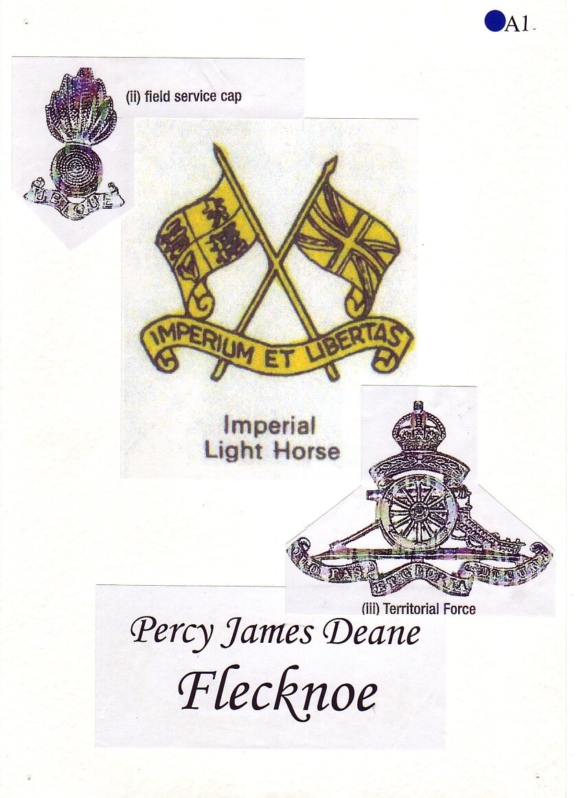 Soldiering was in his blood, for in August 1914 we find Trooper Flecknoe enlisted in the 1st Imperial Light Horse, a South African Cavalry regiment, where he served throughout the German South West African Campaign under General Louis Botha, until his discharge on 10 August 1915.