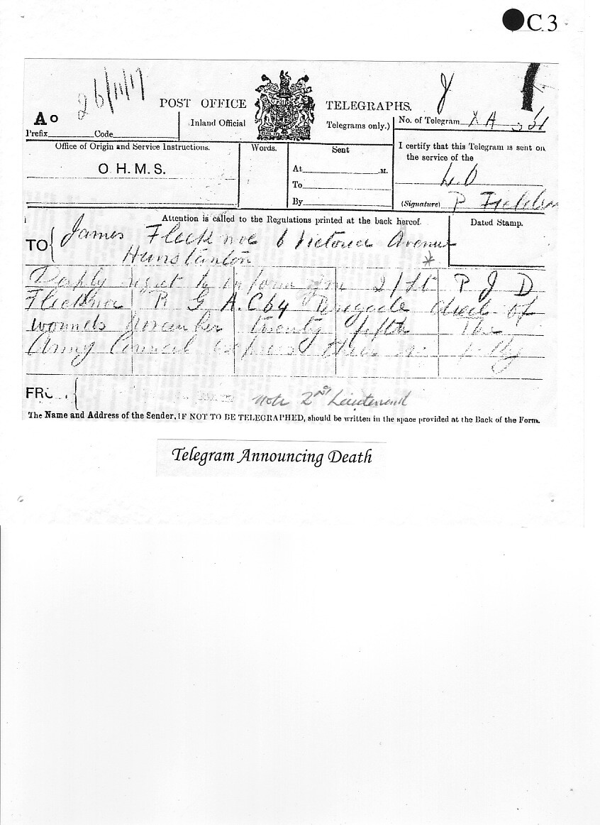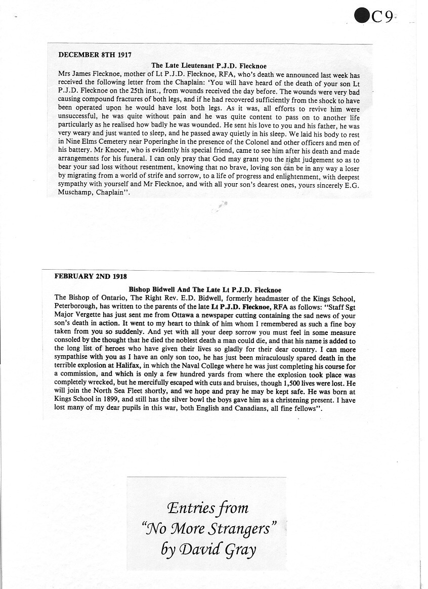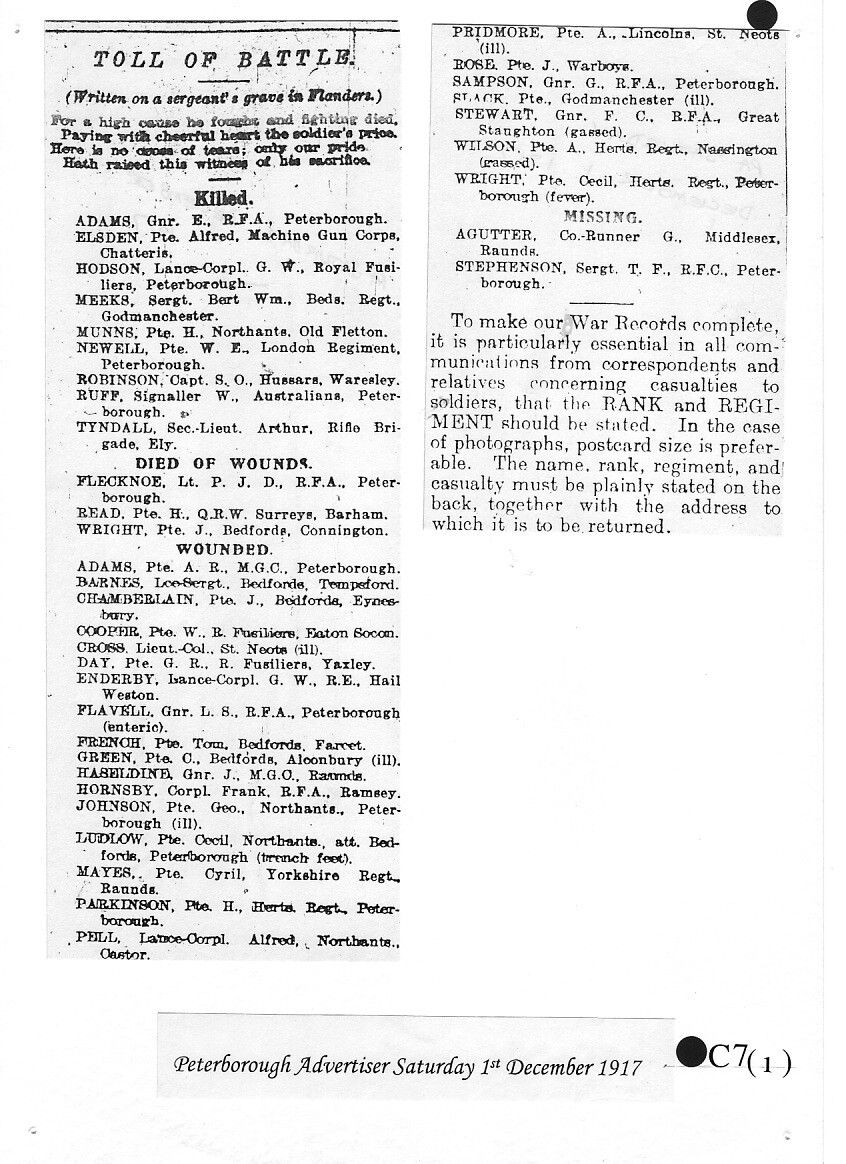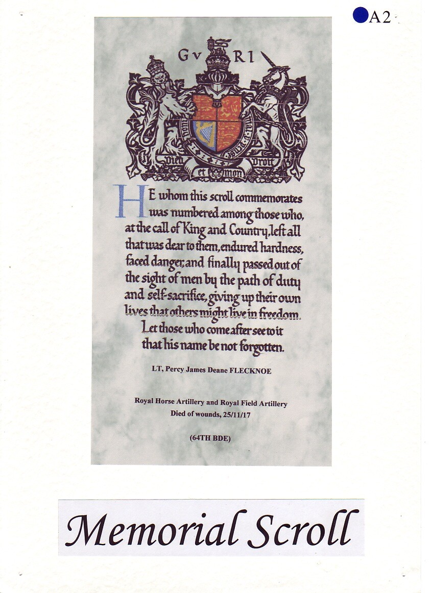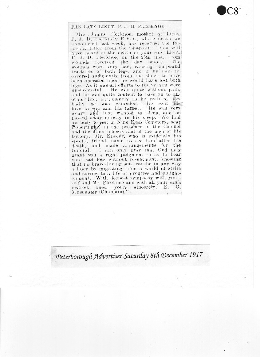 Percy Flecknoe was born on 7 January 1888 and lived with his parents, James and Mary Annie Bell Flecknoe, (née Horter) of Orton Waterville. They kept a butcher's shop at 10 Church Street, Peterborough. Percy had a sister, Dorothy, who by 1918 was married and living in London. Young Percy joined The King’s School in 1897, aged 9. This was a new School, only opened some 12 years before, having moved in 1885 from the Cathedral Precincts. We can only imagine what life was like at the School at that time.