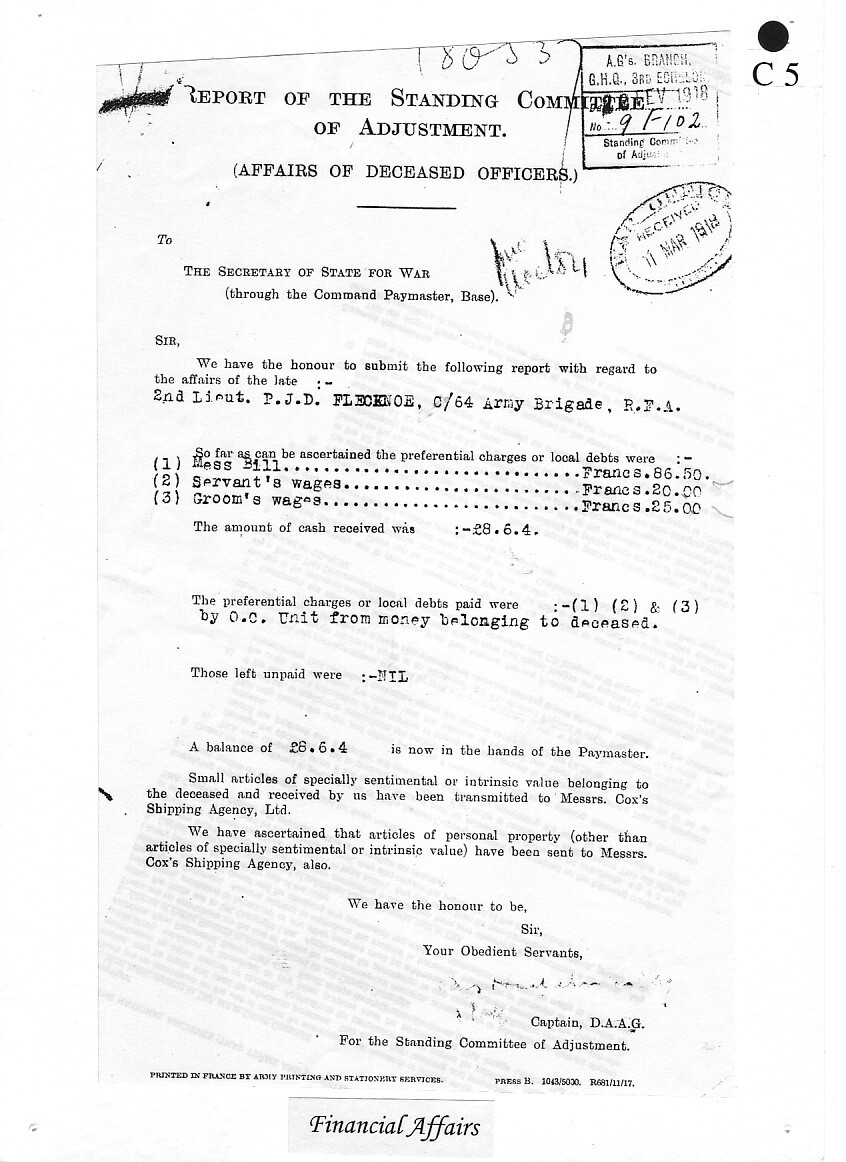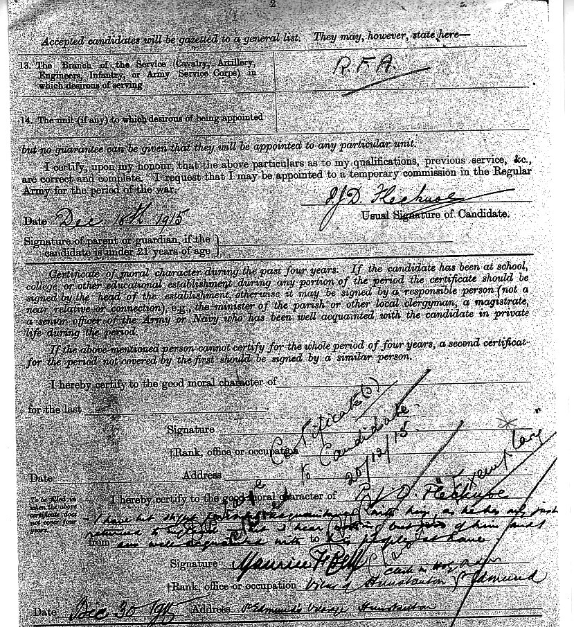 The biggest battles the world had ever seen were taking place in France and Belgium. Percy returned to England with all dispatch and his application for a commission in the British Army was approved on 20 December 1915; he was commissioned into the Royal Field Artillery as a 1st Lieutenant, no doubt as a result of his previous service.
