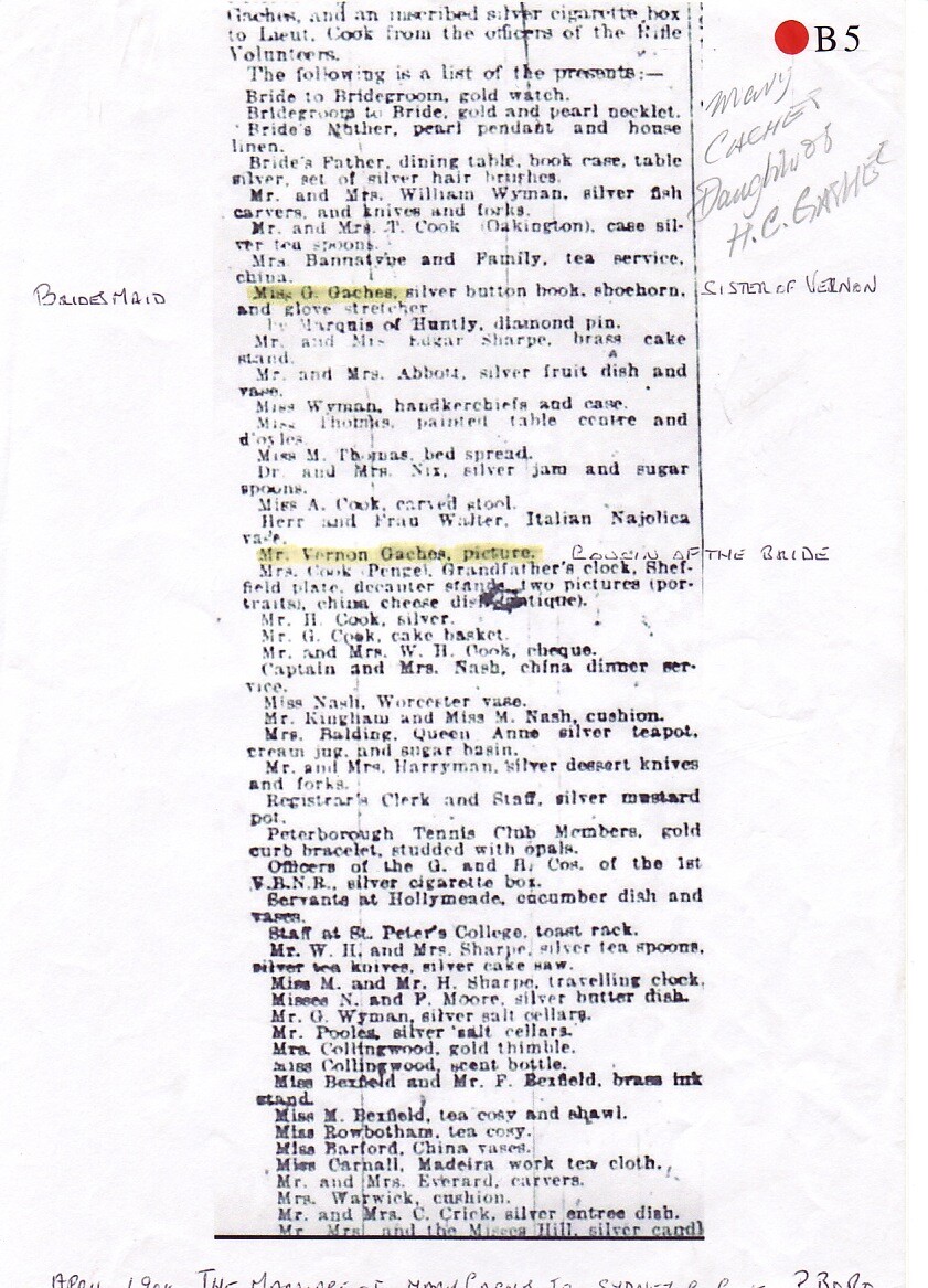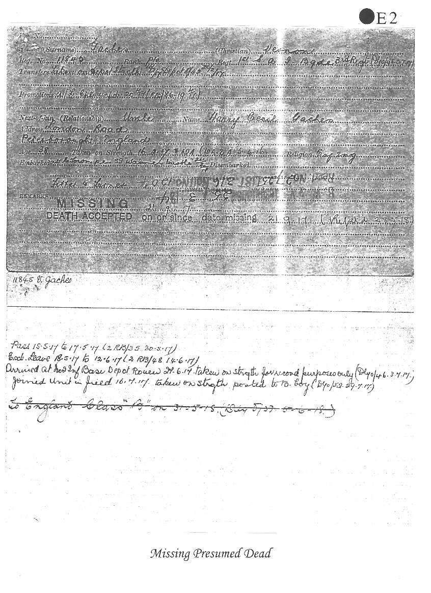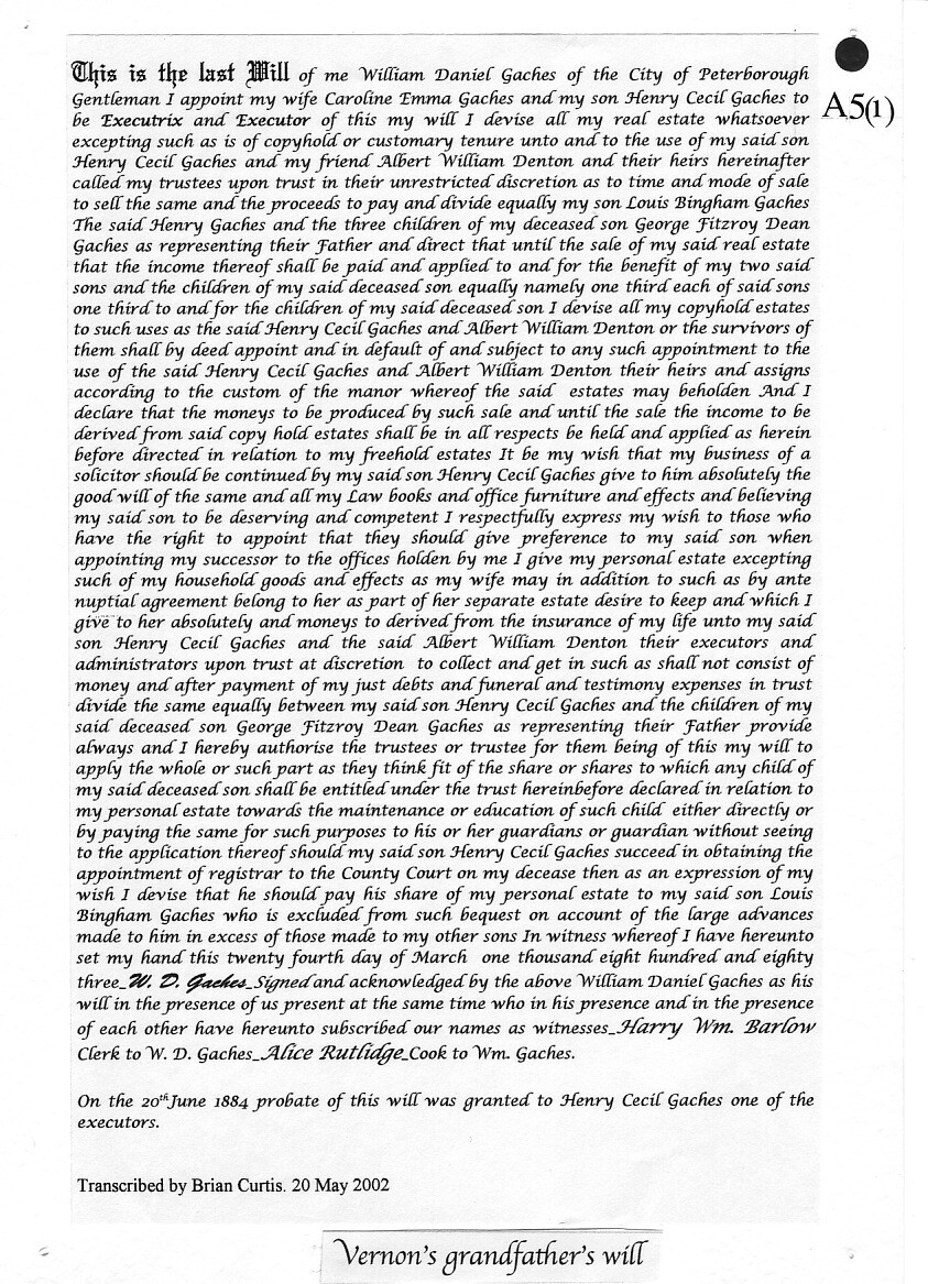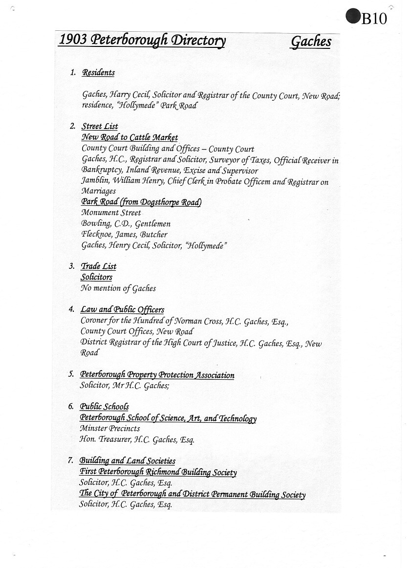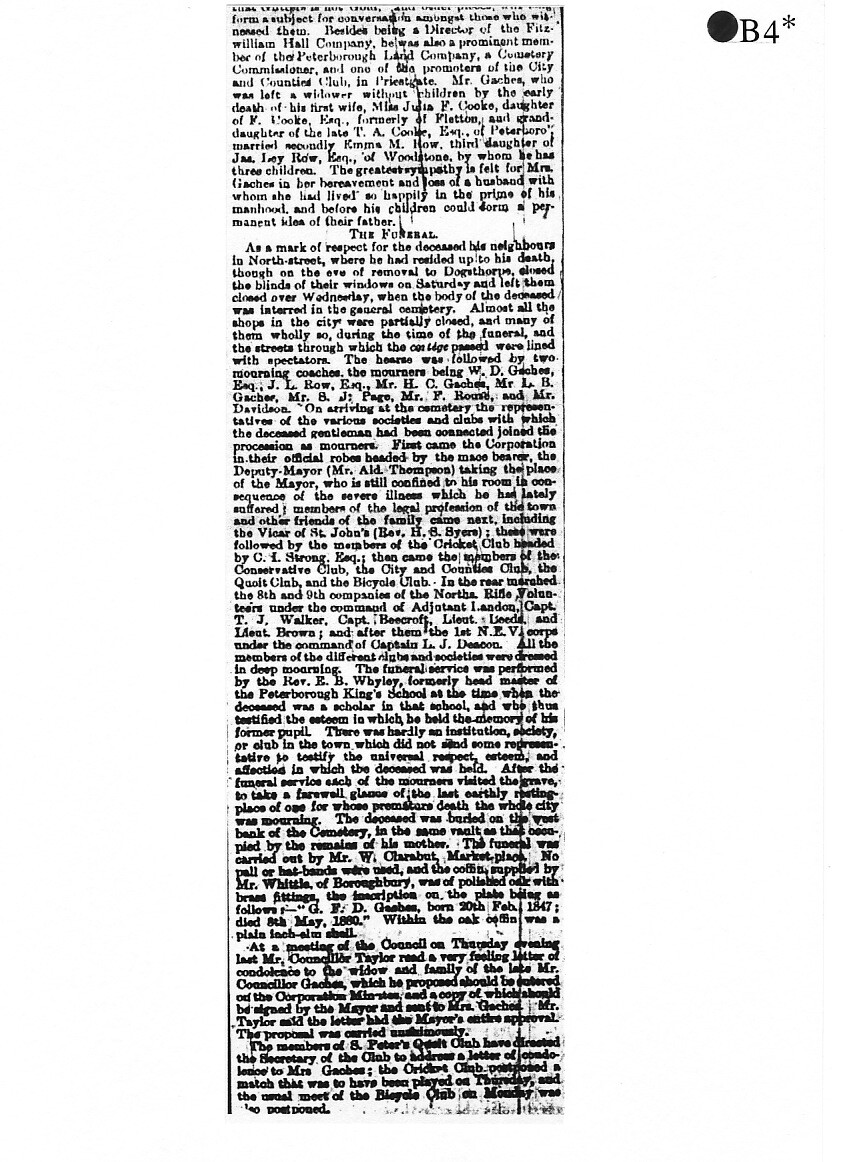 Vernon Gaches came from a well-known Peterborough family, his grandfather had been the first Town Clerk. His father, George, was an Old Petriburgian - the School Archives have a photograph of him in The King's School rugby team in September 1862.