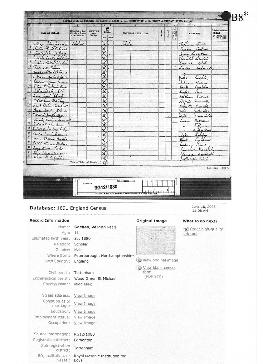 Vernon entered The Royal Masonic Institution for Boys (Wood Green, London) in 1888, as his father had been a member of St. Peter's Masonic Lodge no.442 in Peterborough. He left there in December 1894 and joined The King’s School aged 16 in January 1895. He was 5 feet 11 and a half, with a fresh complexion and brown hair. We know he was living not with his mother but with his guardian, uncle Henry Cecil Gaches, a solicitor, coroner and registrar of the County Court off London Road, who lived at ‘Hollymede’, Park Road. Later that same year, having been at King's just under a year, Vernon left school, probably to take up an apprenticeship in a local engineering firm, as he is later described as a fitter and turner.