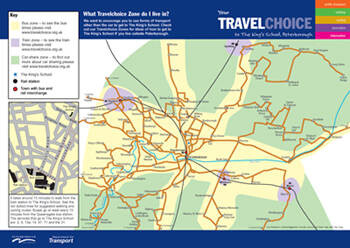 Travel We want to encourage you to use forms of transport other than the car to get to The King’s School. Check out our Travelchoice Zones for ideas of how to get to The King’s School if you live outside Peterborough. Click Image to Download PDF.